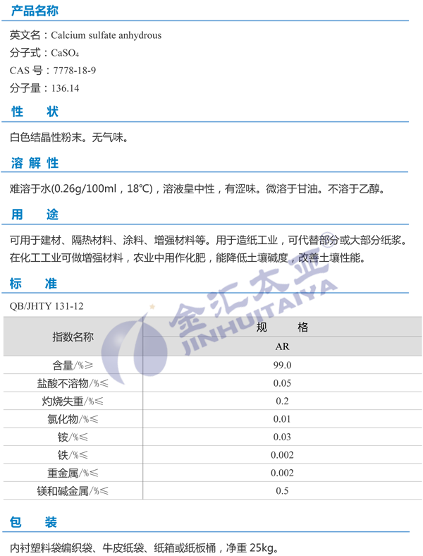 天津金汇太业 无水硫酸钙