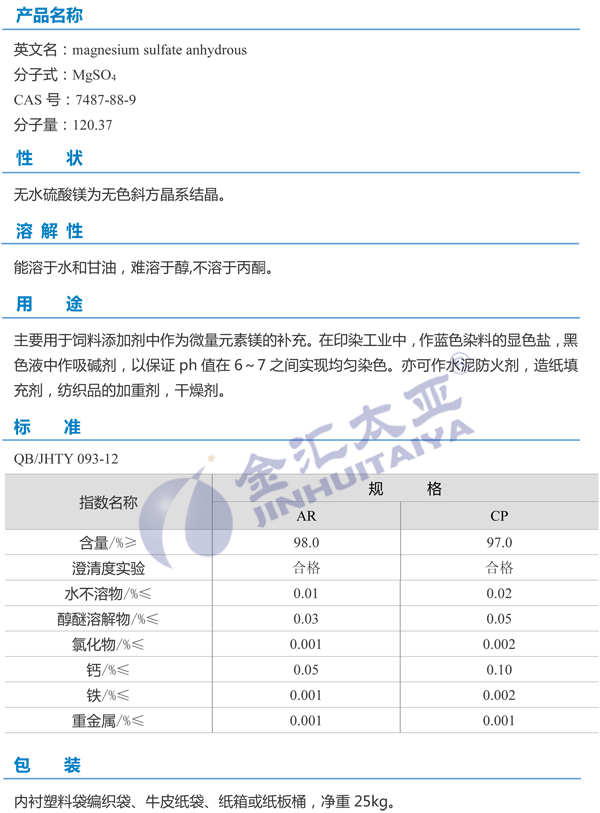 天津金汇太业 无水硫酸镁