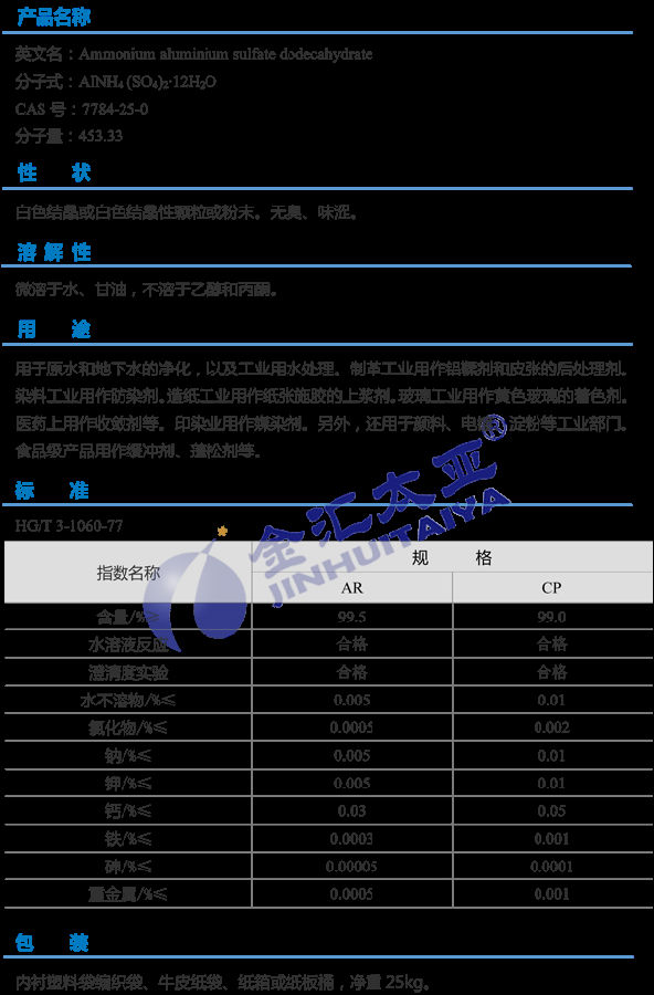 天津金汇太业 硫酸铝铵