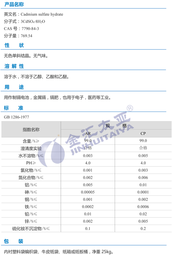 天津金汇太业 硫酸镉