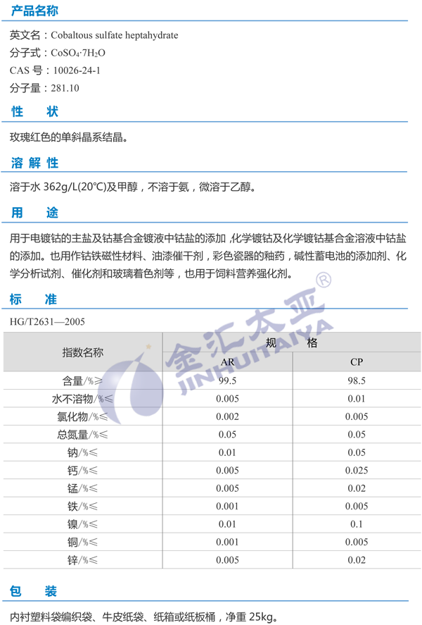 天津金汇太业 七水硫酸钴