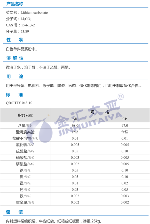 天津金汇太业 碳酸锂