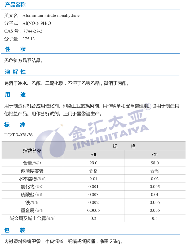 天津金汇太业 九水硝酸铝