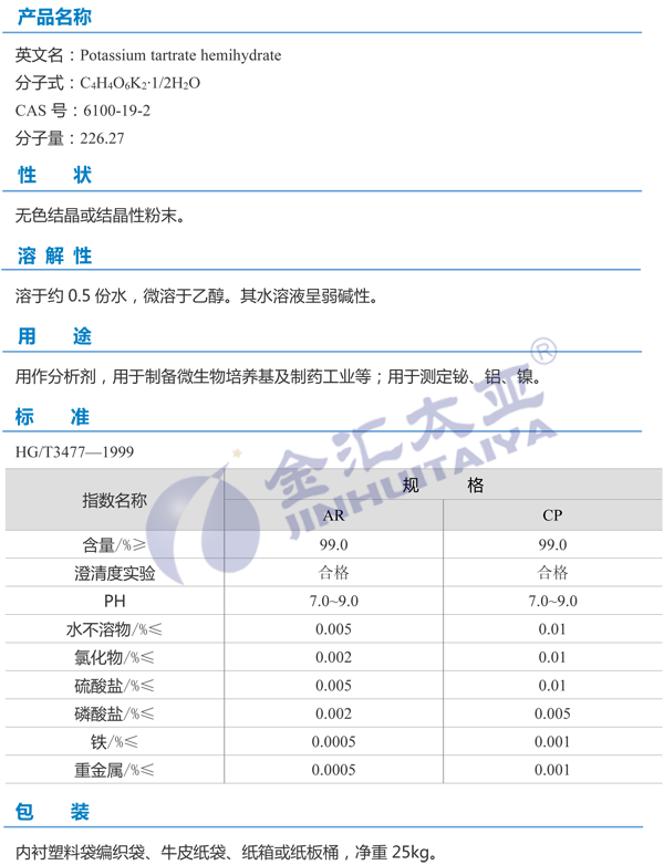 天津金汇太业 半水酒石酸钾