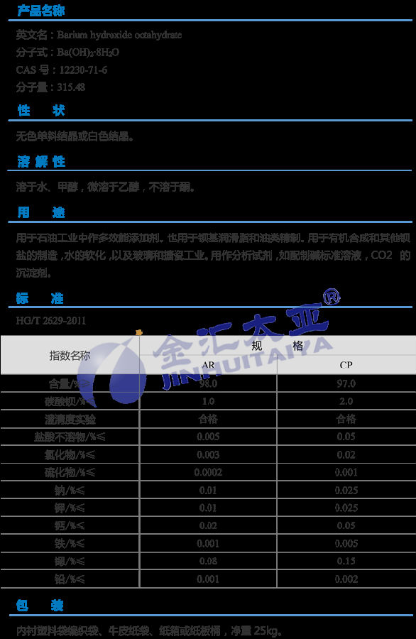 天津金汇太业 八水氢氧化钡