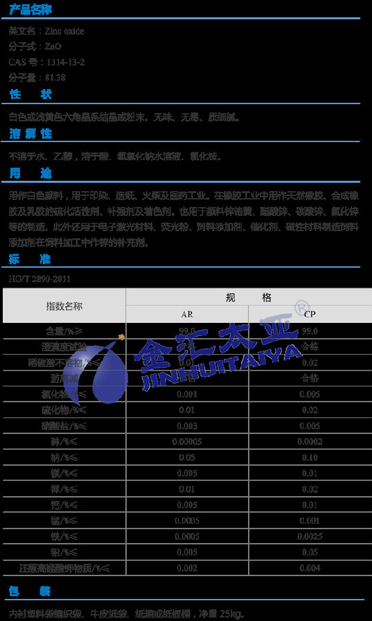 天津金汇太业 氧化锌