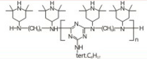 中文名:聚{ [6-[(1,1,3,3-四甲基丁基)氨基]]-1,3,5-三嗪-2,4-双[(2,2,6,6,-四甲基-哌啶基)亚氨基]-1,6-己二撑[(2,2,6,6-四甲基-4-哌啶基)亚氨基]}
