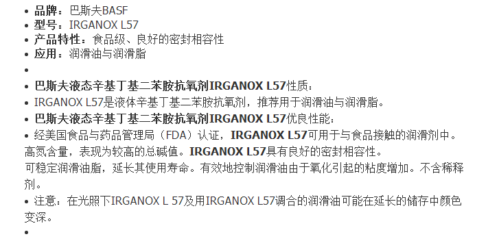 德国巴斯夫BASF液态辛基丁基二苯胺抗氧剂IRGANOX L57