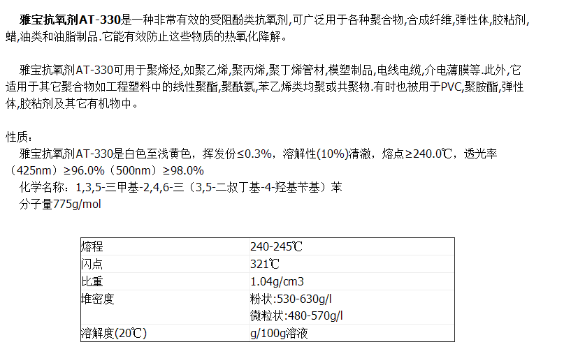 原装进*口 高品质正品雅宝抗氧剂AT-330