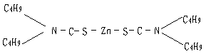 化学名:二丁基二硫代氨基甲酸锌英文名:Zinc Dibutyl Dithiocarbamate结构式:化学式:C18H36N2S4Zn分子量:474.14技术指标: