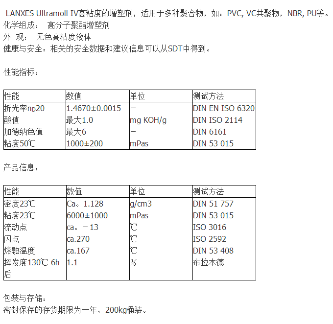 原装进&口 朗盛Ultramoll IV环保增塑剂