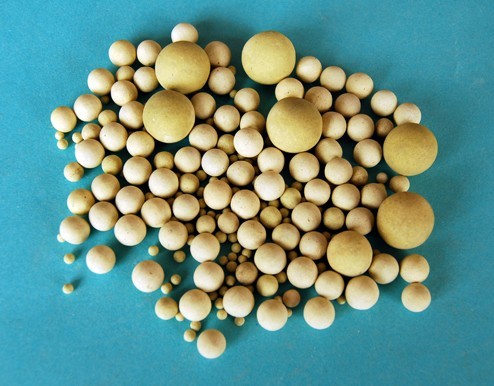XD活性瓷球是在惰性氧化铝瓷球的基础上引入少量过渡金属氧化物制备而成。既具有惰性氧化铝瓷球的耐高温和高机械强度的特性,起过滤、分散汽液,覆盖、支撑催化剂的作用,又具一定的催化活性,在烯烃加氧、脱硫、脱氮和苯加氢等加工流程中,在反应器内催化剂床层顶部装填活性瓷球可使二次加工原油中的单烯烃和双烯烃得到初步加氢,从而减少催化剂结热,在催化剂床层底部装填活性瓷球,可脱除某呰反应过程产生的硫醇等,因此,使用XD活性瓷球,不仅可有效的提高反应器的空间利 用率,而且在一定程度上,具有保护催化剂不被中毒和烧结的作用,从两延长催化剂的使用寿命。