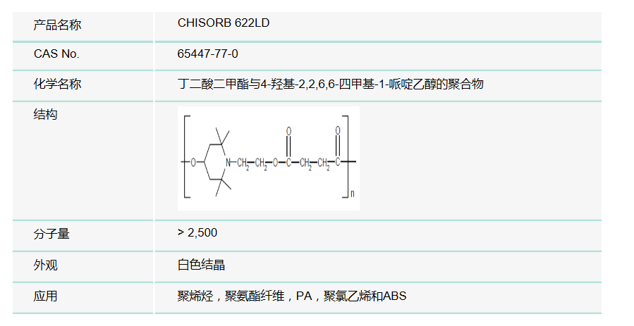 双键光稳定剂-受阻胺类 CHISORB 622LD