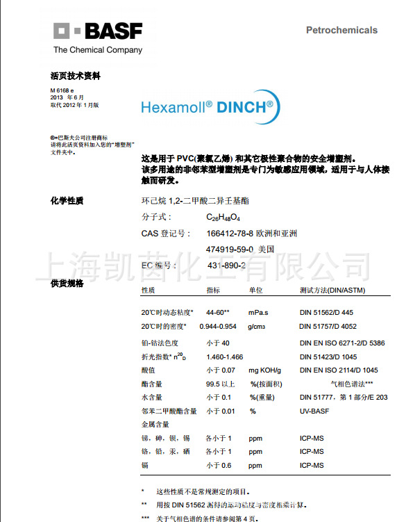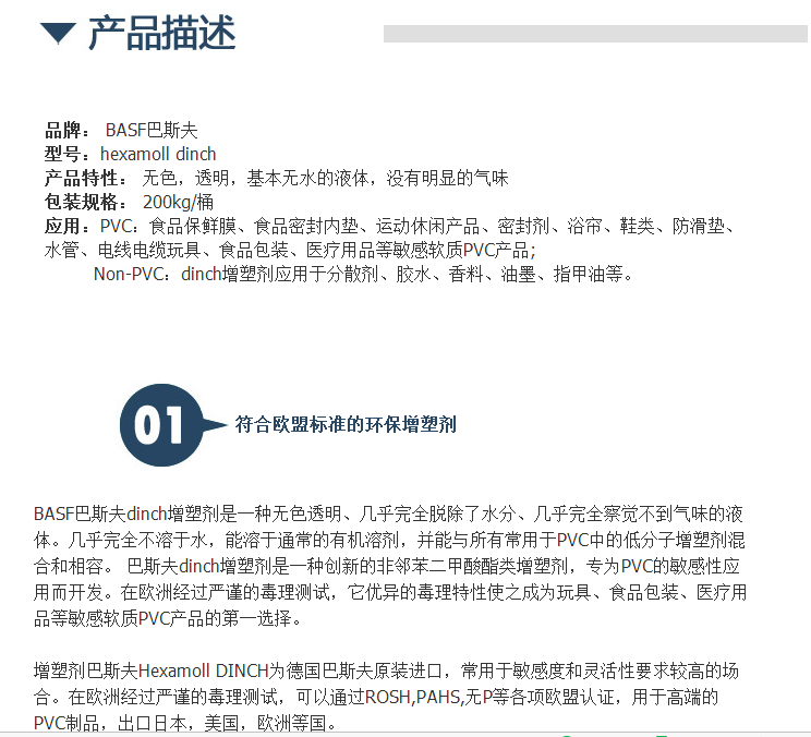 巴斯夫(BASF)Hexamoll dinch环保增塑剂