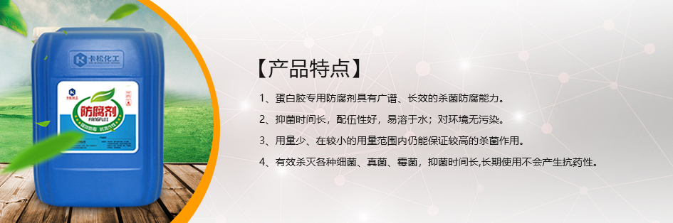 1、蛋白胶专用防腐剂具有广谱、长效的杀菌防腐能力。