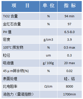 本品是硅、铝表面处理的金红石型产品和同类型的油墨型二氧化钛产品相比具有明显高的光泽、易湿润和分散的特点。用于塑料,色母粒,涂料,油墨,油漆等通用型产品.