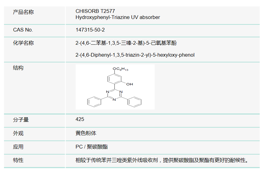 双键光稳定剂/紫外光吸收剂-其他 CHISORB T2577