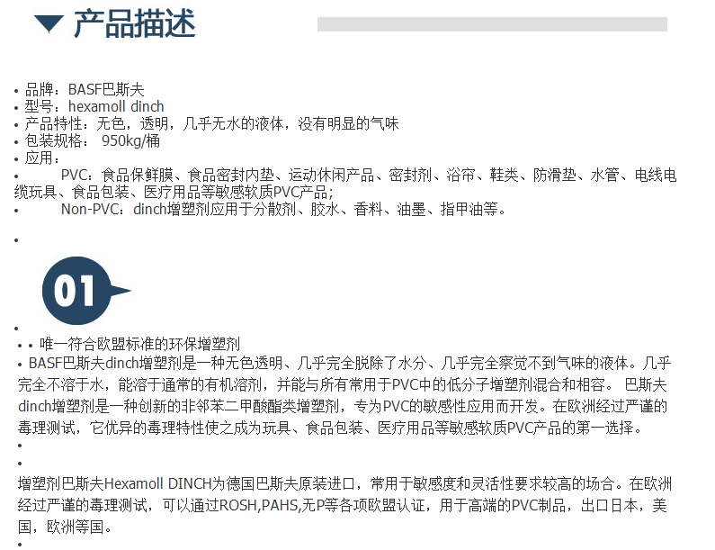 诚信供应BASF巴斯夫dinch环保增塑剂