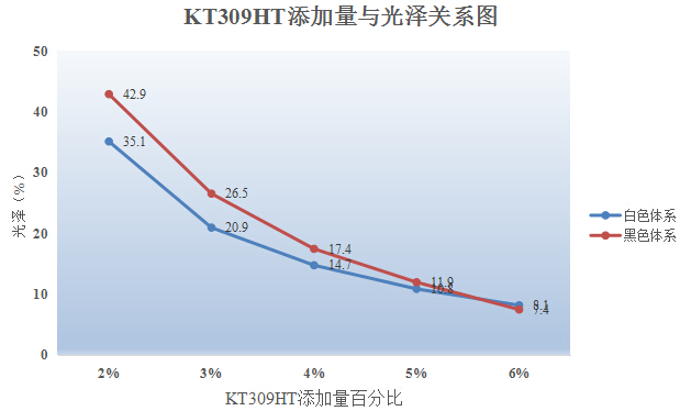 KT309HT添加量为粉末总量的2%-6%,可以获得最低小于10°的光泽。