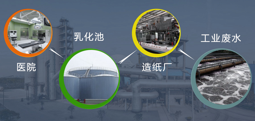 造纸厂、乳化池、淀粉厂、橡胶厂、制药厂、酒厂、印染厂污废水;