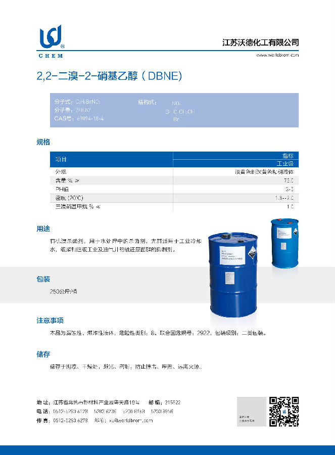 江苏沃德化工 2,2-二溴-2硝基乙醇(DBNE)
