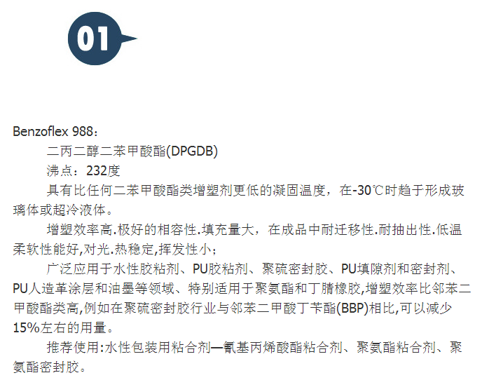 伊士曼 高效环保增塑剂 水性粘合剂 Benzoflex 988