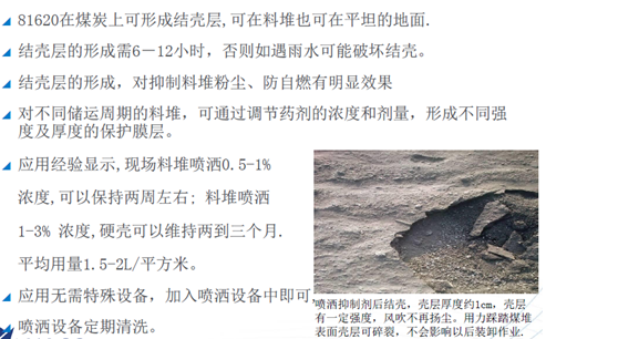 § JN7977一般投加量为20g-100g/吨煤。建议先按50g/吨煤进行喷洒,然后根据实际使用情况再来调整N7977的加药量。