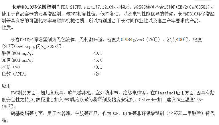 原装正品 无毒环保高品质环保增塑剂长春D810