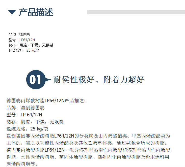 原装进*口 赢创德固赛丙烯酸树脂LP64/12N
