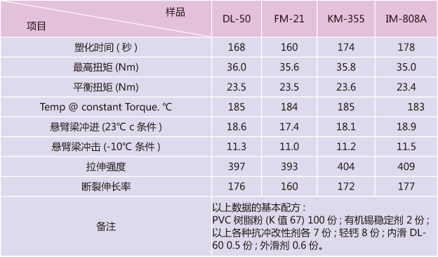 ■DL-50与国外同类产品的塑化及机械性能的对比表: