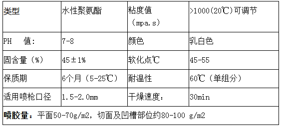 4.低粘度值、良好的喷雾及优异的粘接性能。