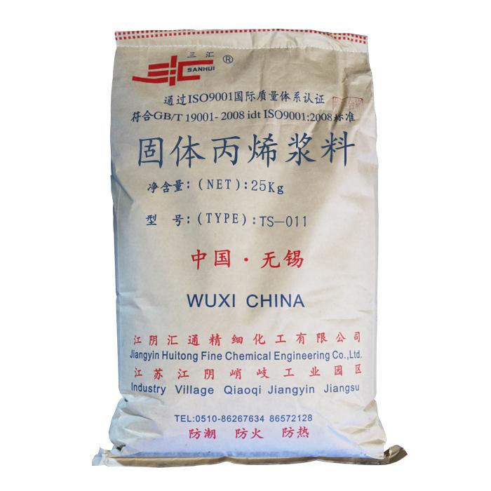 TS-011固体丙稀浆料,是以先进工艺生产,以丙烯酸、丙烯酰胺为主体,配以适当的酯类和添加剂聚合而成。该浆料对棉纤维、再生纤维素纤维、麻纤维及其混纺纱线有良好的粘附性,可完全取代液体丙烯酸浆料用于纺织经纱上浆。