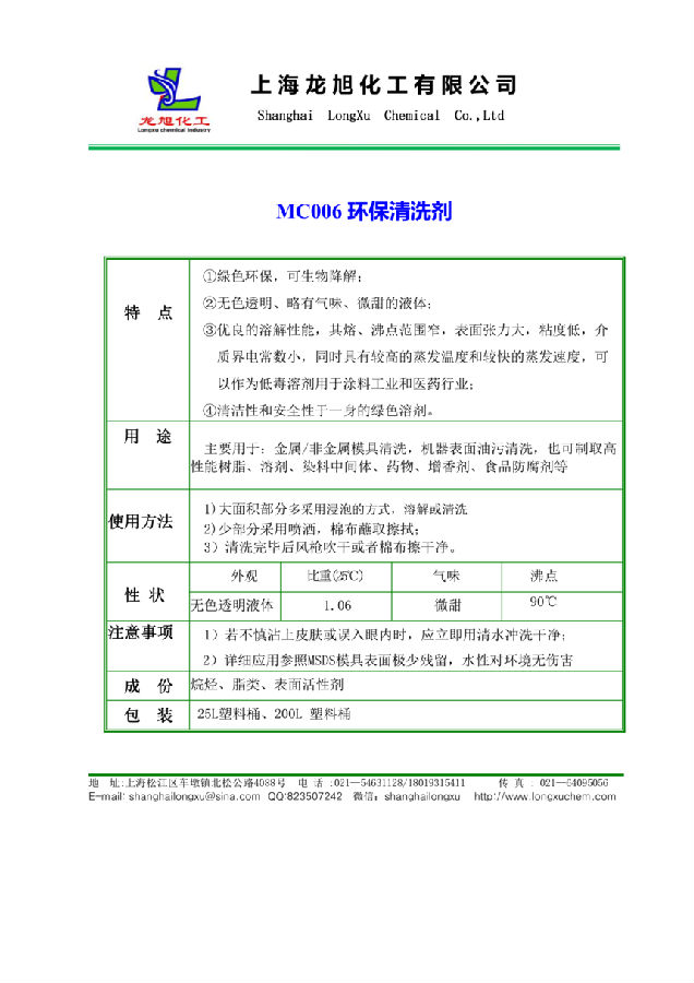 上海龙旭化工 MC006环保清洗剂