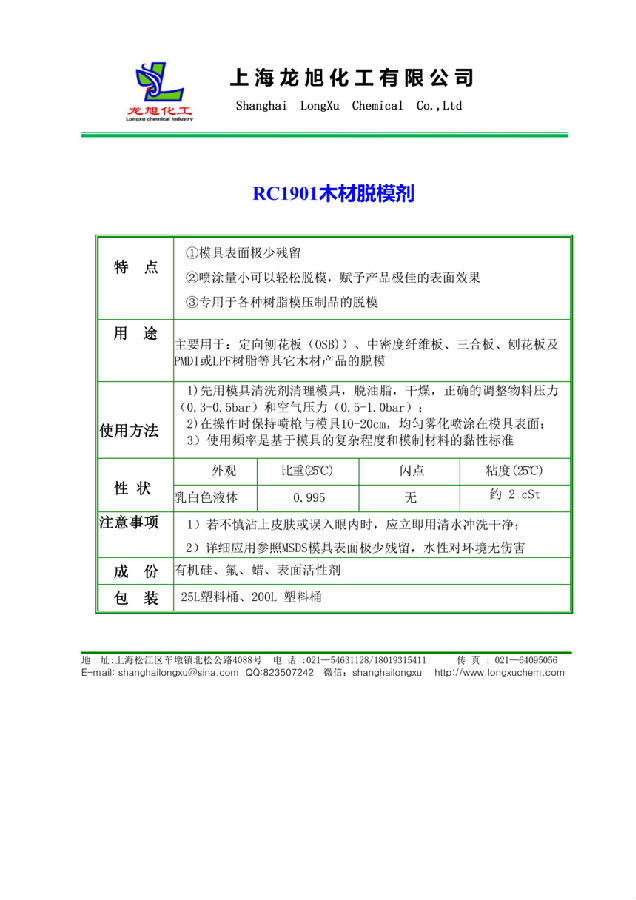上海龙旭化工 木材脱模剂 RC1901