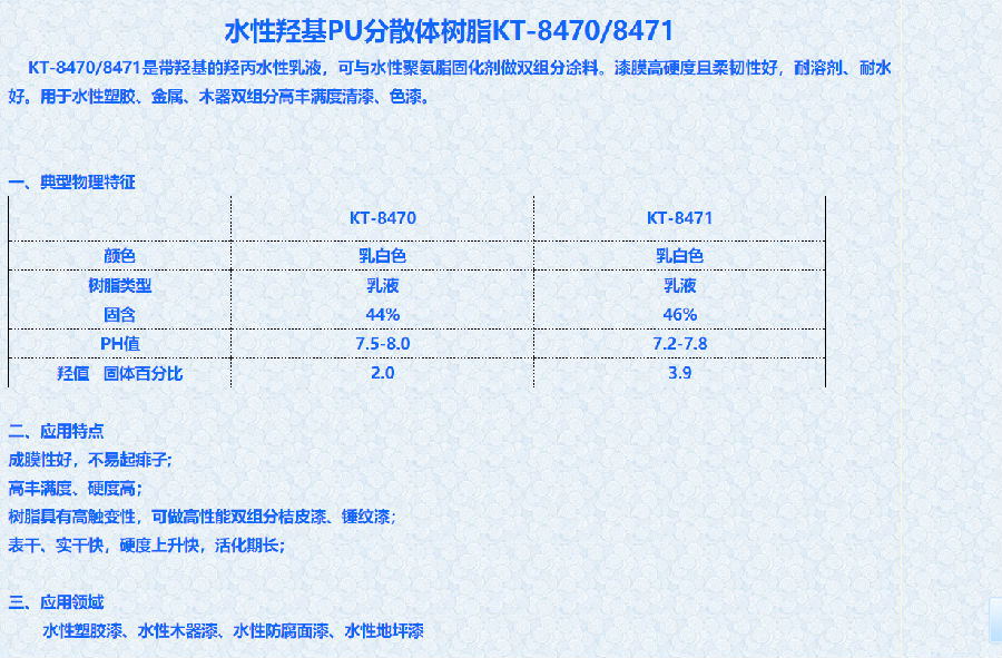 广州洲朝新材料 水性羟丙树脂 KT-8470