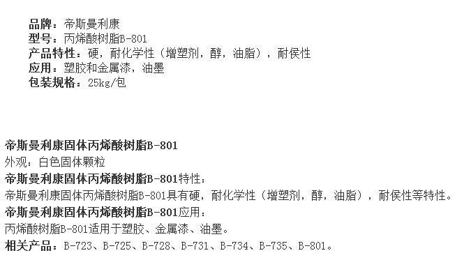 荷兰帝斯曼利康固体丙烯酸树脂B-801