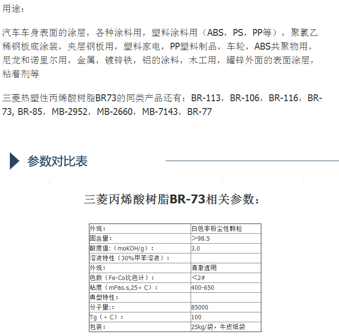 日本三菱热塑性丙烯酸树脂BR-73