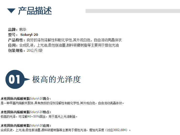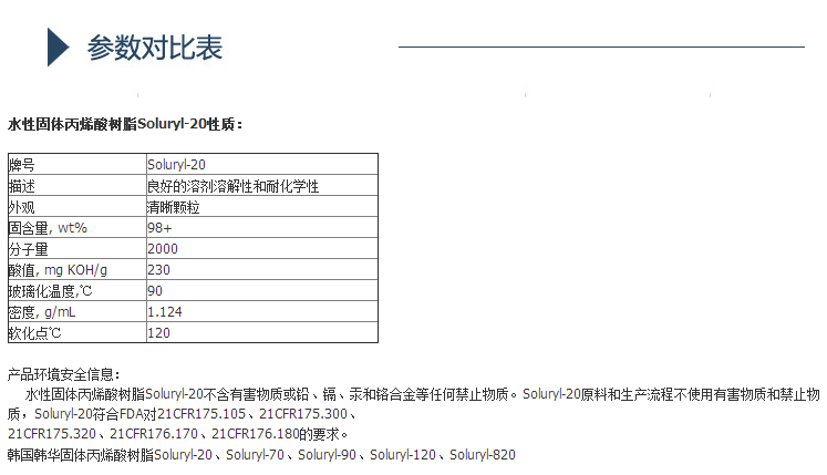 原装进*口 韩华水性固体丙烯酸树脂Soluryl-20