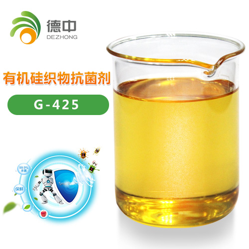 G-425是一种非溶出性抗菌卫生整理剂,它具有良好的安全性、广谱高效的抗菌性和优异的耐洗涤性,适用于棉、涤纶、涤棉、锦纶等织物的抗菌卫生整理。经G-425整理后的织物具有高效的抗菌、防臭、防霉、止痒作用,对接触织物的MRSA、金黄色葡萄球菌、表皮葡萄球菌、淋球菌(国内流行株)、淋球菌(国际标准耐药株)、肺炎杆菌、大肠杆菌、绿脓杆菌、枯草杆菌有害菌具有优异的抗菌作用,高度耐水洗;能有效地预防疾病通过织物传染,对防治脚癣、股癣、湿疹、汗臭、脚臭、皮肤骚痒等有显著效果。G-425抗菌处理后的织物具有优异的耐洗涤性,G-425对婴幼儿、妇女均安全、无毒、无刺激、不变色、使用后无残留。