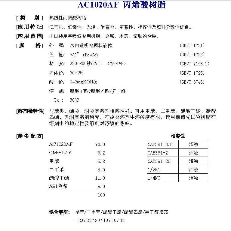 佛山市高明同德化工 AC1020AF 丙烯酸树脂
