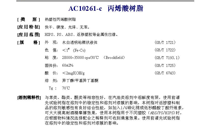 佛山市高明同德化工 AC10261-c丙烯酸树脂
