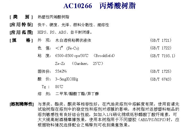 佛山市高明同德化工 AC10266 丙烯酸树脂