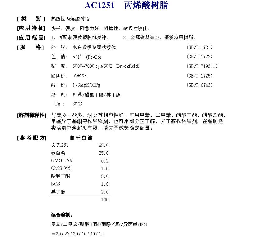 佛山市高明同德化工 AC1251丙烯酸树脂