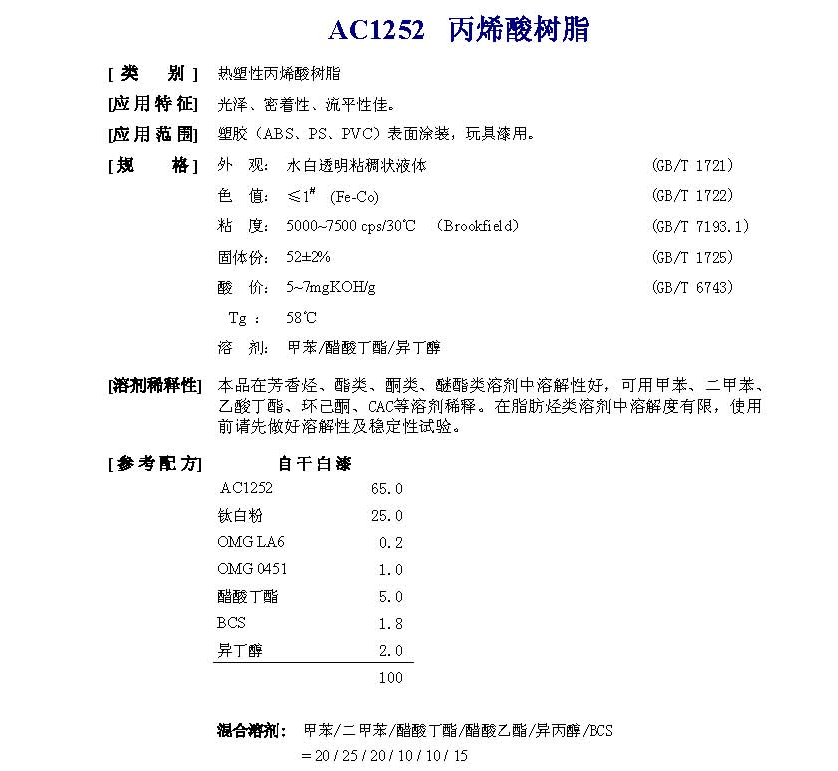 佛山市高明同德化工 AC1252丙烯酸树脂