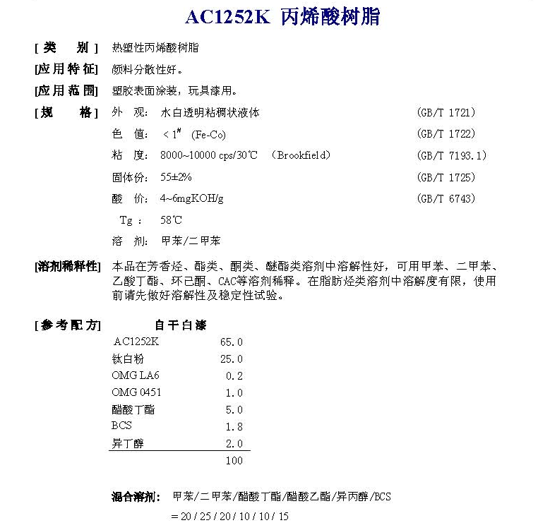 佛山市高明同德化工 AC1252K丙烯酸树脂