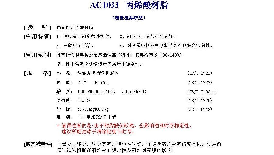 佛山市高明同德化工 AC1033丙烯酸树脂
