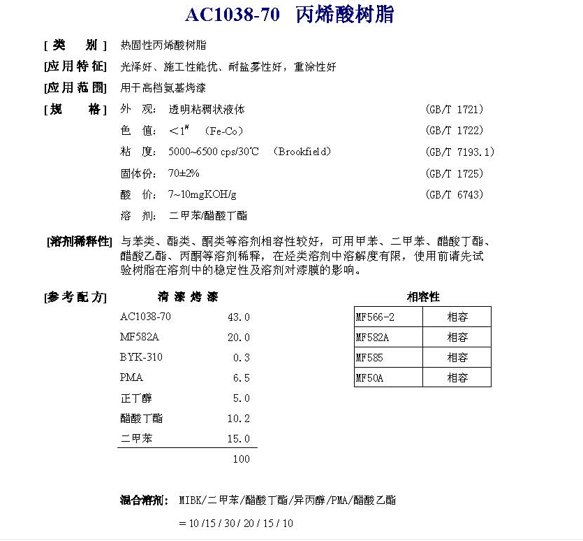 佛山市高明同德化工 AC1038-70丙烯酸树脂