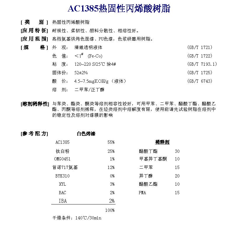 佛山市高明同德化工 AC1385热固性丙烯酸树脂