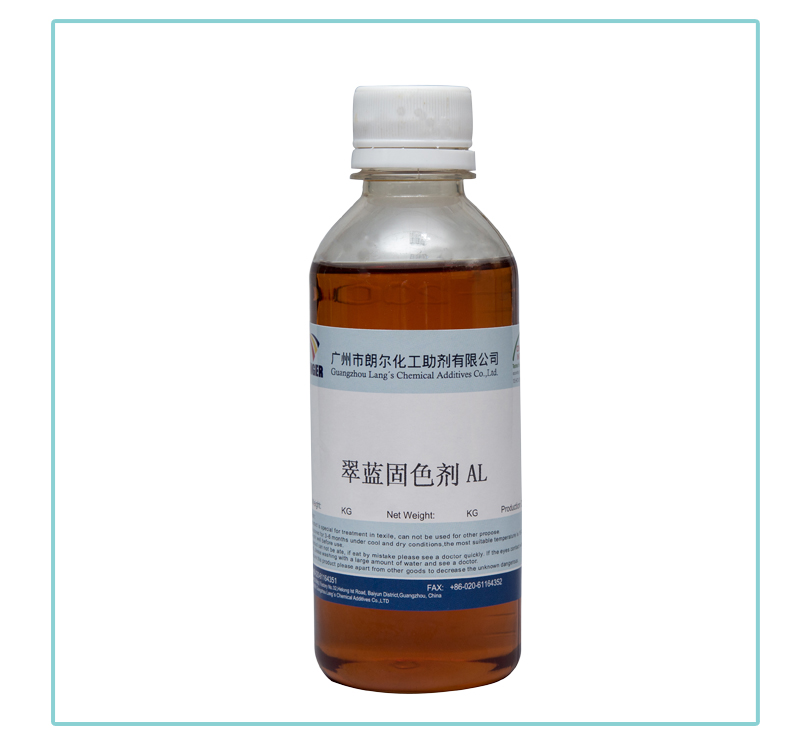 1.翠蓝固色剂AL是不含甲醛的活性及直接翠蓝染料专用固色剂,他的活性物质可以相互缩合,能借助自身的网状结构与染料形成大分子;也可以与染料形成离子键和范德华力;同时,其本身和纤维也有结合作用;从而改善染色织物的耐湿色牢度和洗色牢度。