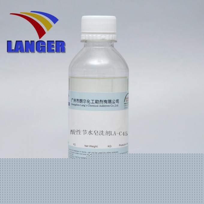 2. 用于皂洗时,能防止皂渍、提高洗涤効率、增加鲜艳度;印花织物皂洗时,能防止白地沾污。无毒,不含芳香胺,不含重金属离子。可以迅速彻底中和织物上的碱,用于活性染料染色后中和与皂洗, 与碱的生产物不会残留于织物,中和比冰醋酸更彻底,
